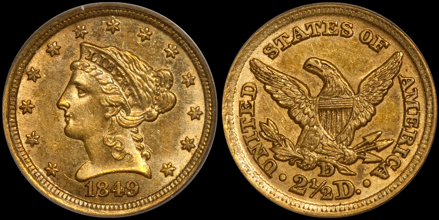 1849-D $2.50 PCGS MS60 CAC, Kentucky Collection